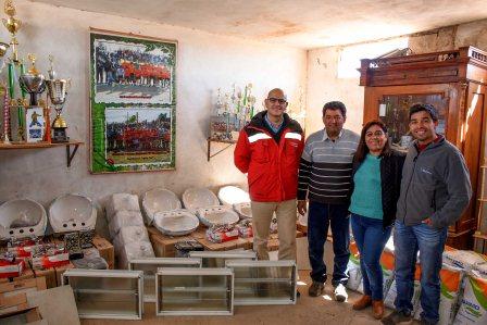 Minas Argentinas realizó la entrega de materiales de construcción a la Unión Vecinal Otra Banda, de Jáchal, para que esa institución complete la construcción de los camarines y sanitarios de su Club. La obra, de más de 90 metros cuadrados cubiertos, tiene un nivel de avance importante, pero necesitaba de estos implementos para finalizarla.