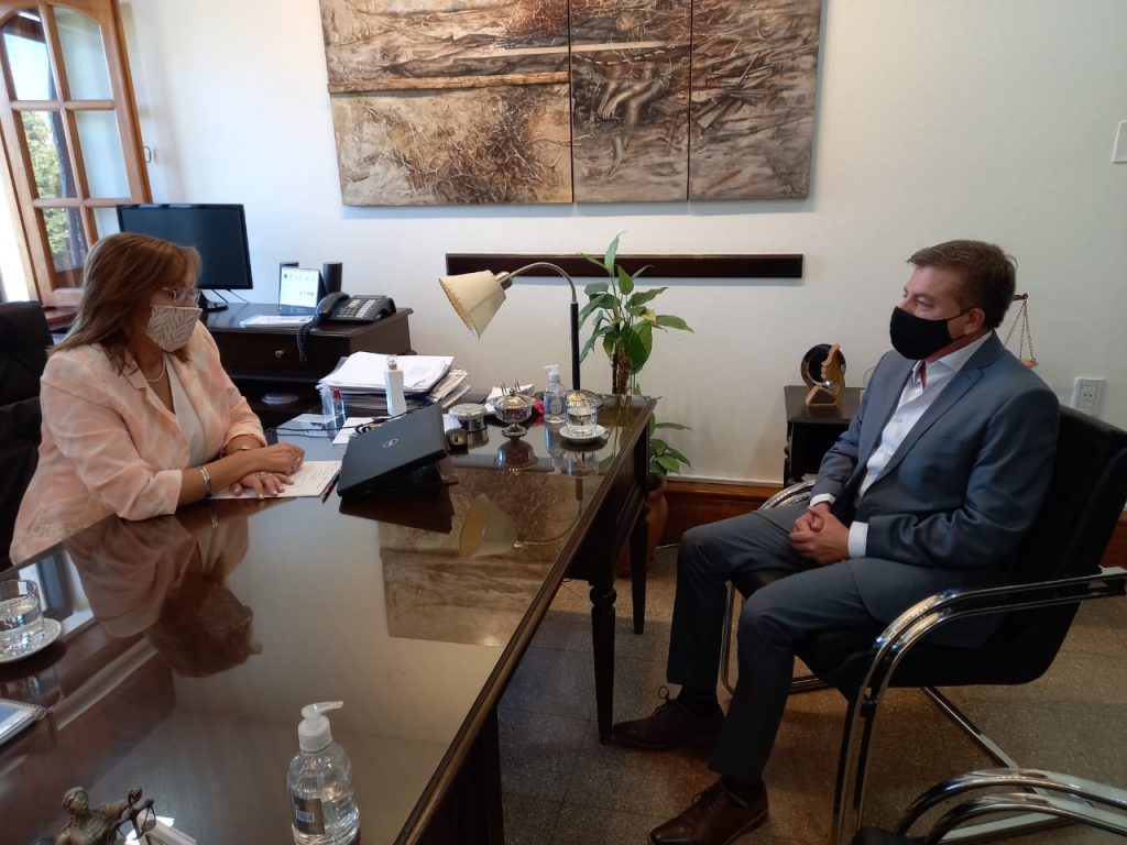 Este martes, la presidenta de la Corte de Justicia de San Juan, Dra. Adriana García Nieto, recibió en su despacho al intendente Miguel Vega para coordinar acciones de trabajo para el año 2021. Con el objetivo puesto en la construcción de la Ciudad Judicial que será emplazada en varios terrenos que la Municipalidad de Jáchal donó para el complejo judicial.