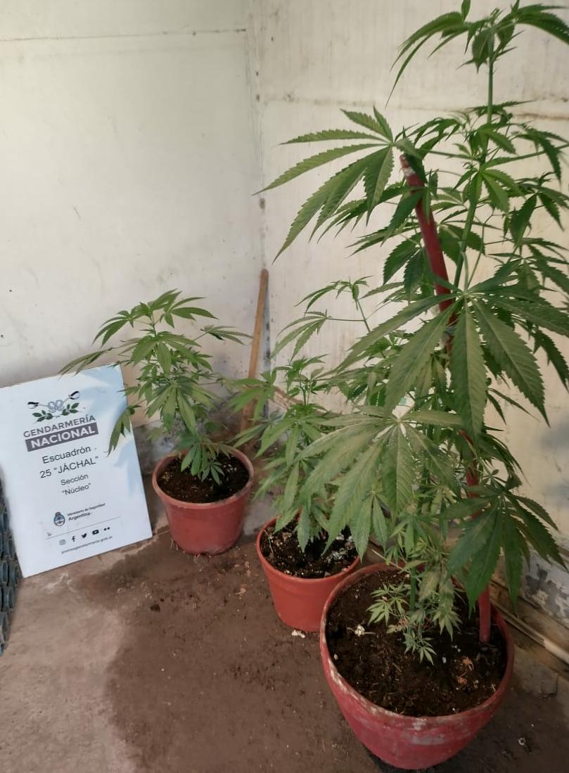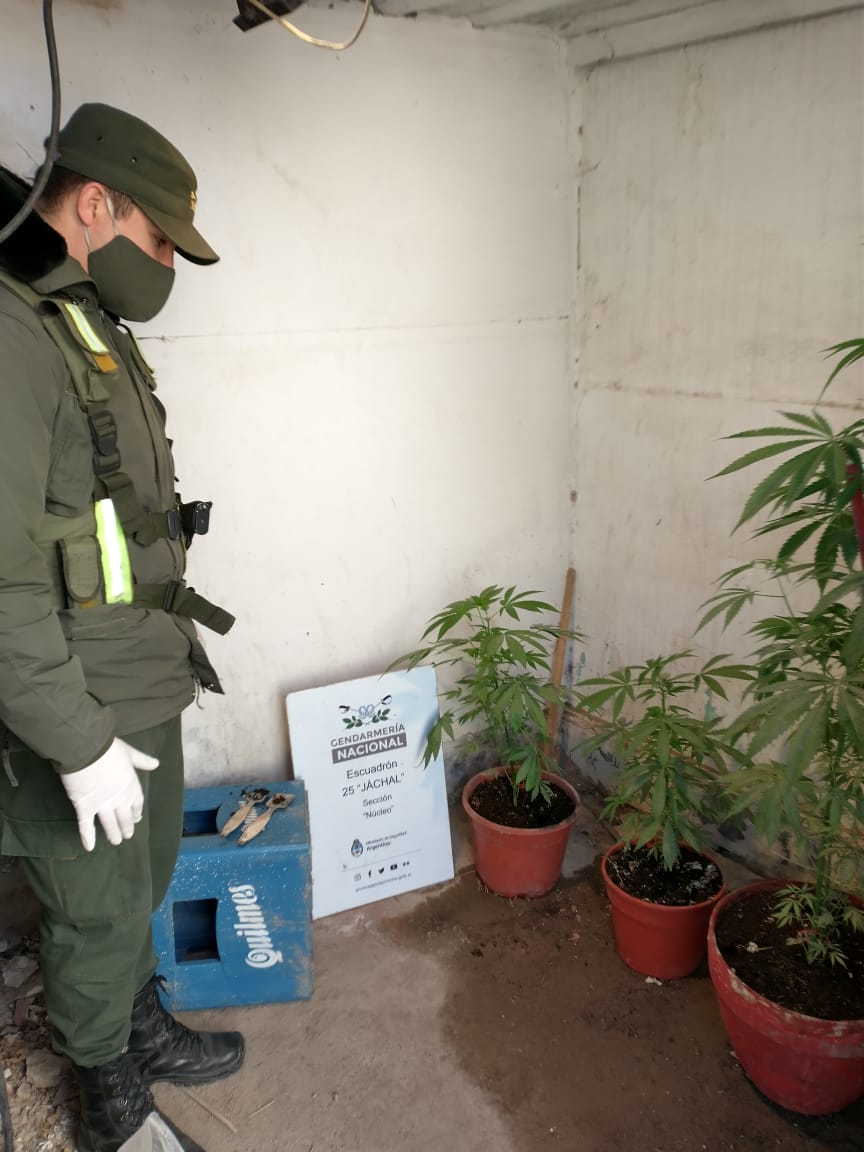 En la mañana de hoy, la comisaria 21 de policía de Jáchal fue alertada por un vecino sobre música muy alta en un local de comidas frente a la plaza. De inmediato personal uniformado se apersono en el lugar para constatar que efectivamente se estaba realizando una especie de “fiesta clandestina” penada por flagrancia. Las cosas no terminaron ahí, en una inspección más detallada se descubren tres (3) plantas de marihuana, de inmediato se procedió a informar al Escuadrón 25 Jáchal de Gendarmería Nacional para que intervenga en el operativo.
