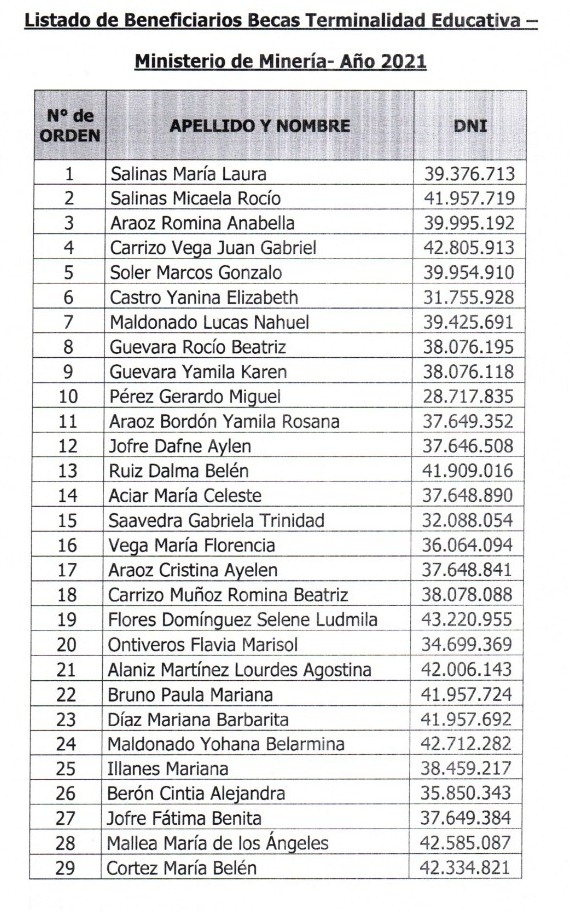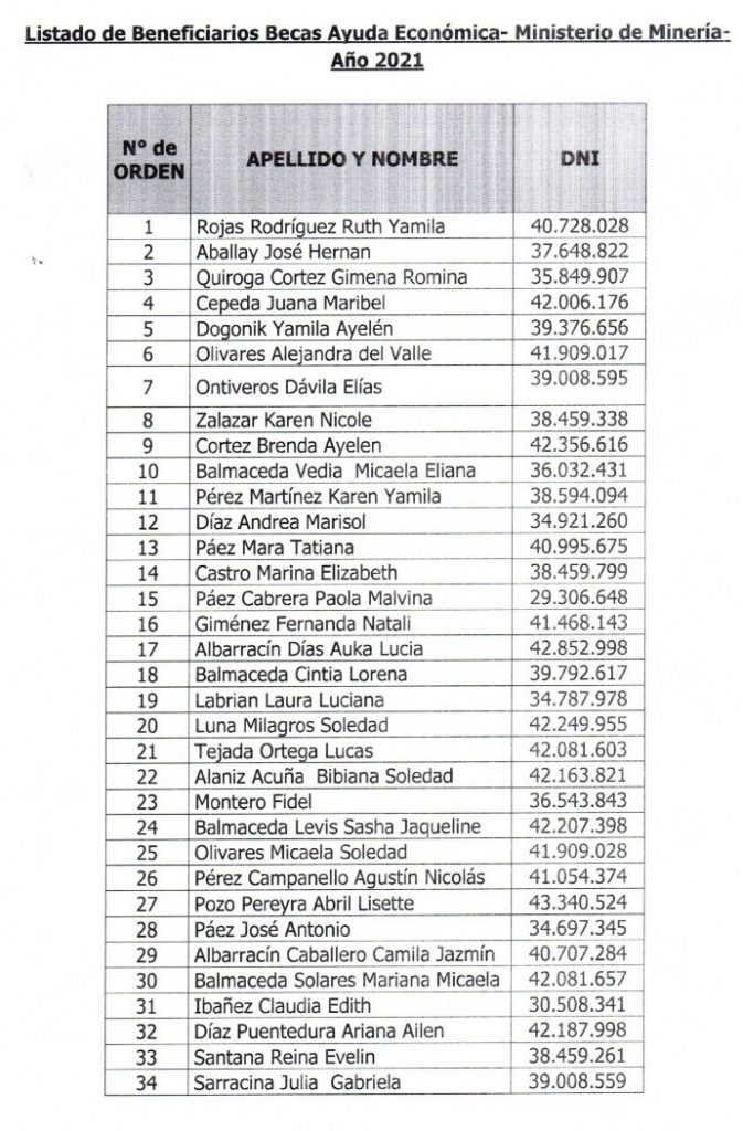 En la mañana de este miércoles finalmente se dio a conocer el listado de los beneficiarios de las becas del Ministerio de Minería. Luego de mucho tiempo de espera.