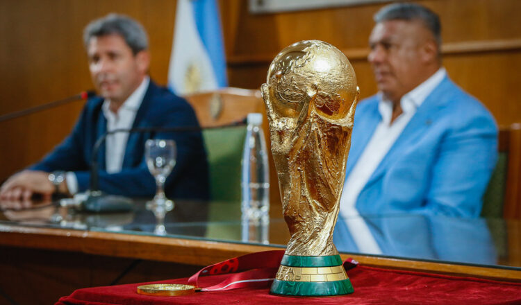 El gobernador de San Juan, Sergio Uñac, brindó una conferencia de prensa junto al presidente de la Asociación Fútbol Argentino AFA, el sanjuanino Claudio “Chiqui” Tapia, en ocasión de la presentación del trofeo de la Copa Mundial de Fútbol que obtuvo el seleccionado argentino el pasado 18 de diciembre.