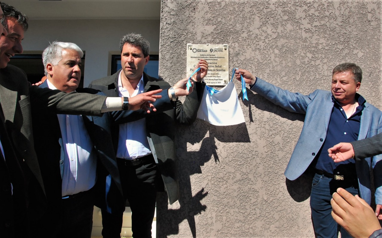En el Centro Productivo de Jáchal, el Gobernador Sergio Uñac, el Intendente Miguel Vega y demás funcionarios, realizaron el descubrimiento de placa y corte de cinta que habilitó el ingreso a un hermoso galpón de importantes dimensiones, que alberga maquinaria industrial para el *proceso de clasificación de semillas que será utilizado por la “Mesa de Semillas” y las casi 10 cooperativas dedicadas a esta actividad productiva, entre otras*.